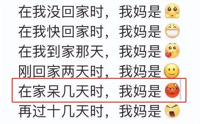 第三天早上十点,你顶着鸡窝头走出房门,迎接你的不再是热乎早餐,而是妈妈叉腰站在客厅:“太阳都晒屁股了!昨晚又玩到几点?”曾经被夸“独立懂事”的作息,现在成了“昼夜颠倒”;随手扔在沙发上的外套,从“孩子太累了”变成“眼里没活”。最扎心的是,连吃饭都要被念:“多吃点青菜!你看你这外卖脸。”