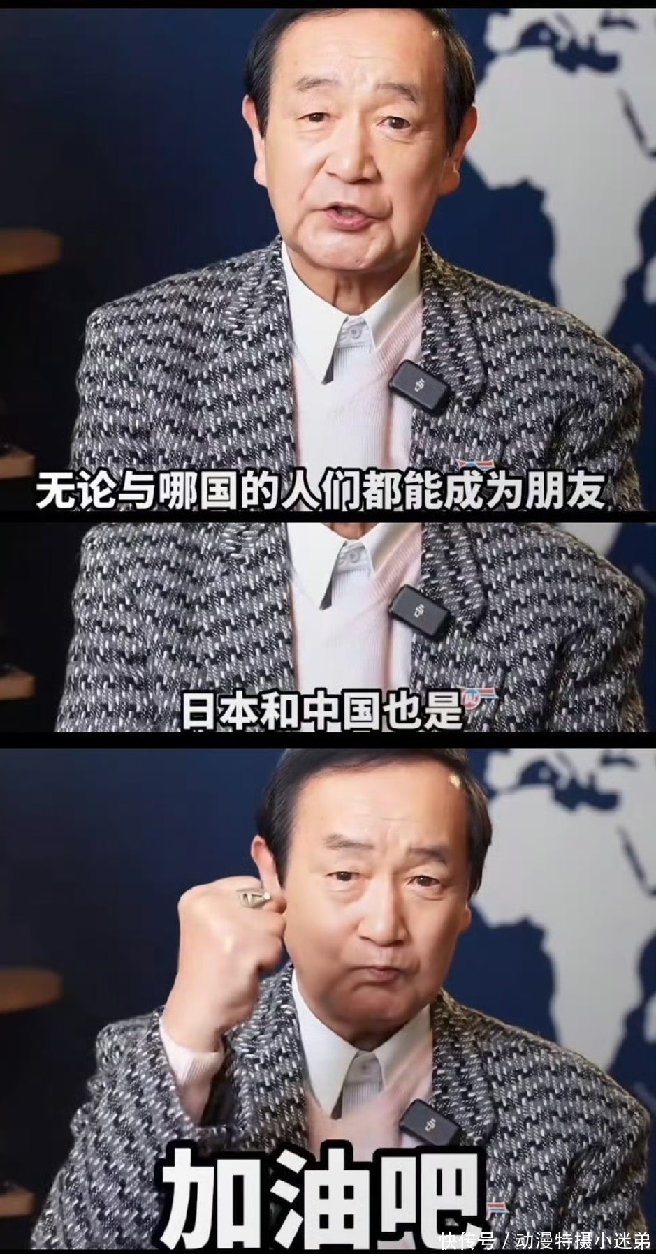 作为艾斯奥特曼的人间体扮演者,高峰圭二老爷子本人也是非常的正义,曾经也说过“无论与哪国的人们都能成为朋友,日本和中国也是,加油吧”!可以说这位老爷子,是以演员的身份践行奥特曼精神50年!真的好像是艾斯奥特曼的人间体,而且在特摄圈中,也是很多人都喜欢高峰圭二老爷子的,这次他的发言,真的让人敬佩。