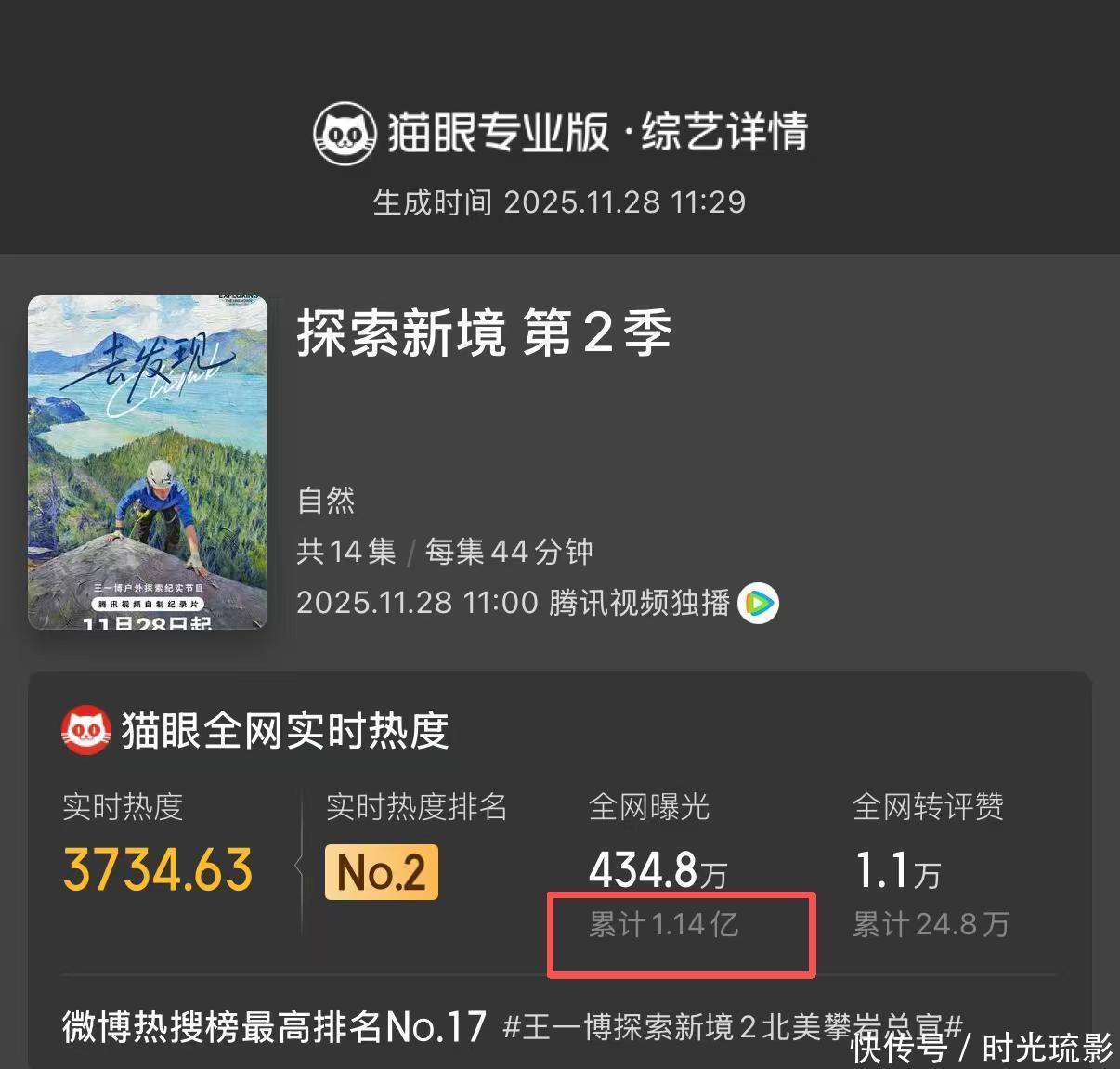 第二季刚播出一集,全网累计曝光量就超过了1亿。